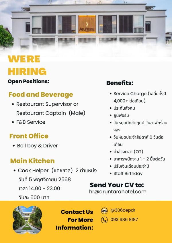 สนใจร่วมงานกับเรา สามารถส่ง Resume มาที่ [email protected] ยินดีต้อนรับทุกท่านค่ะ