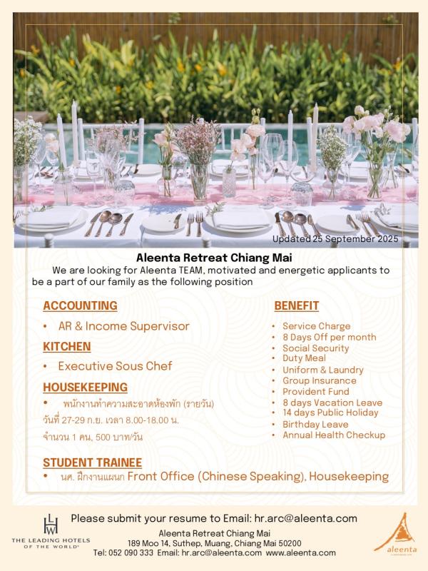 ทั้งหมด 1 ตำแหน่ง | เชียงใหม่