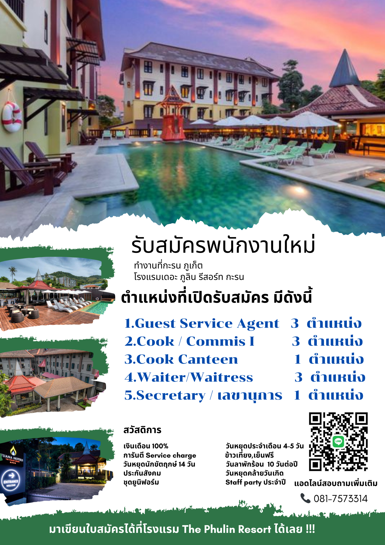 ด่วนๆ ตำแหน่งว่างงานประจำวันที่ 22/12/2025 ประจำ โรงแรมเดอะภูลินรีสอร์ท กะรน ภูเก็ต