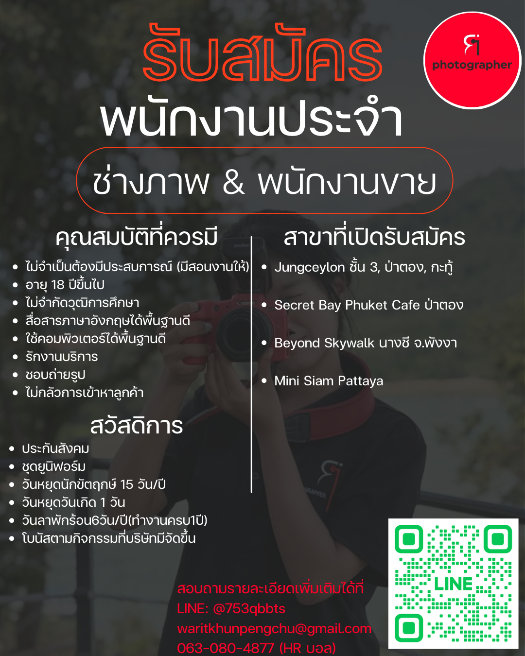 ส่งประวัติส่วนตัวพร้อมรูปถ่ายปัจจุบันเข้ามาที่ [email protected] *ยินดีรับผู้ไม่มีประสบการณ์*