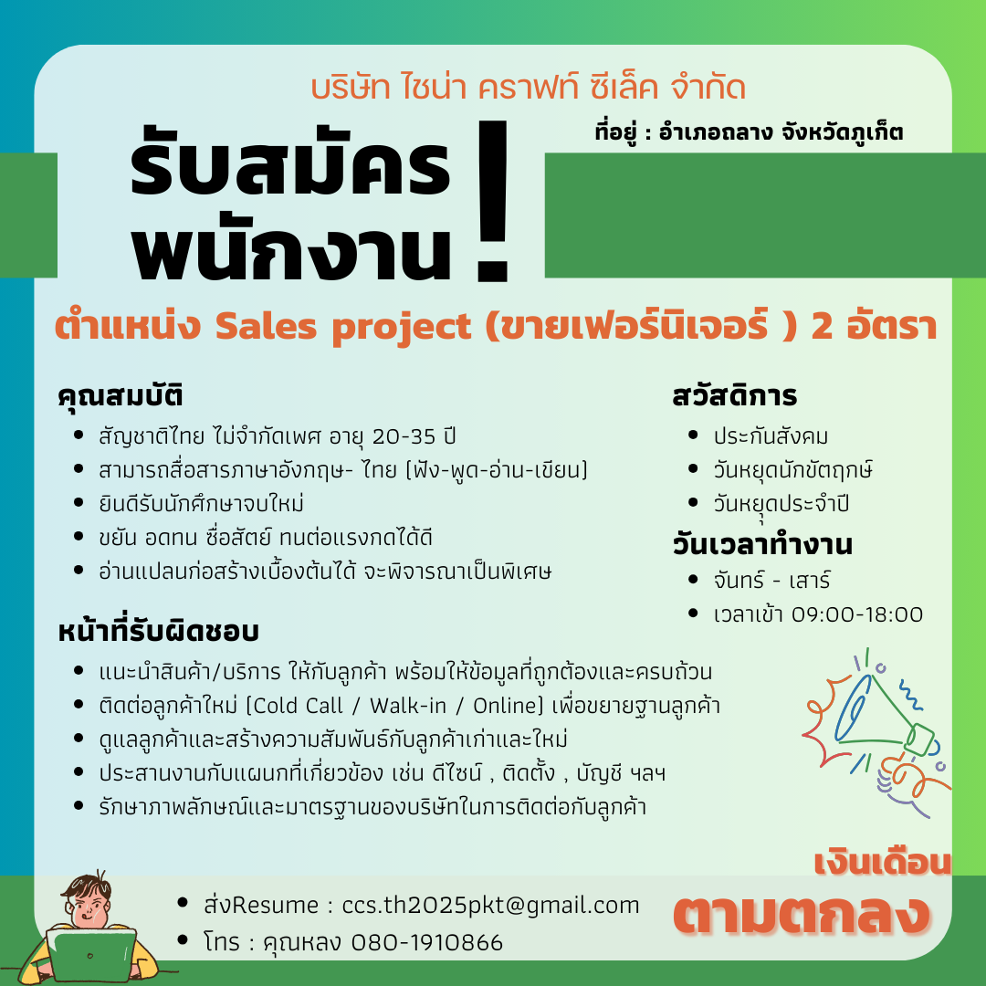 ประกาศรับสมัครพนักงาน Sales project (ขายเฟอร์นิเจอร์ ) จำนวน 2 อัตรา