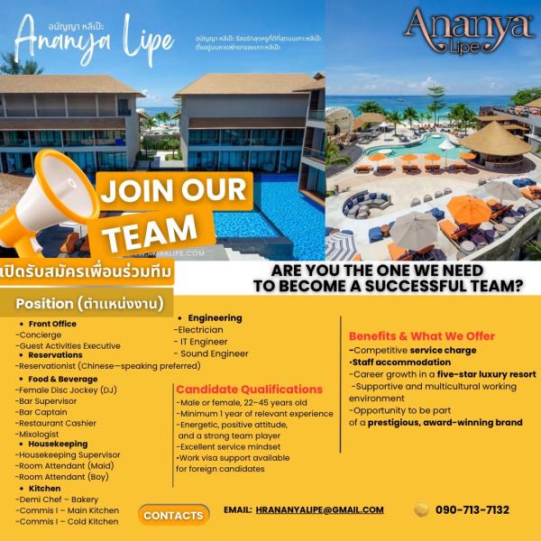 ทำงานที่ โรงแรม อนัญญา เกาะหลีเป๊ะ จ.สตูล