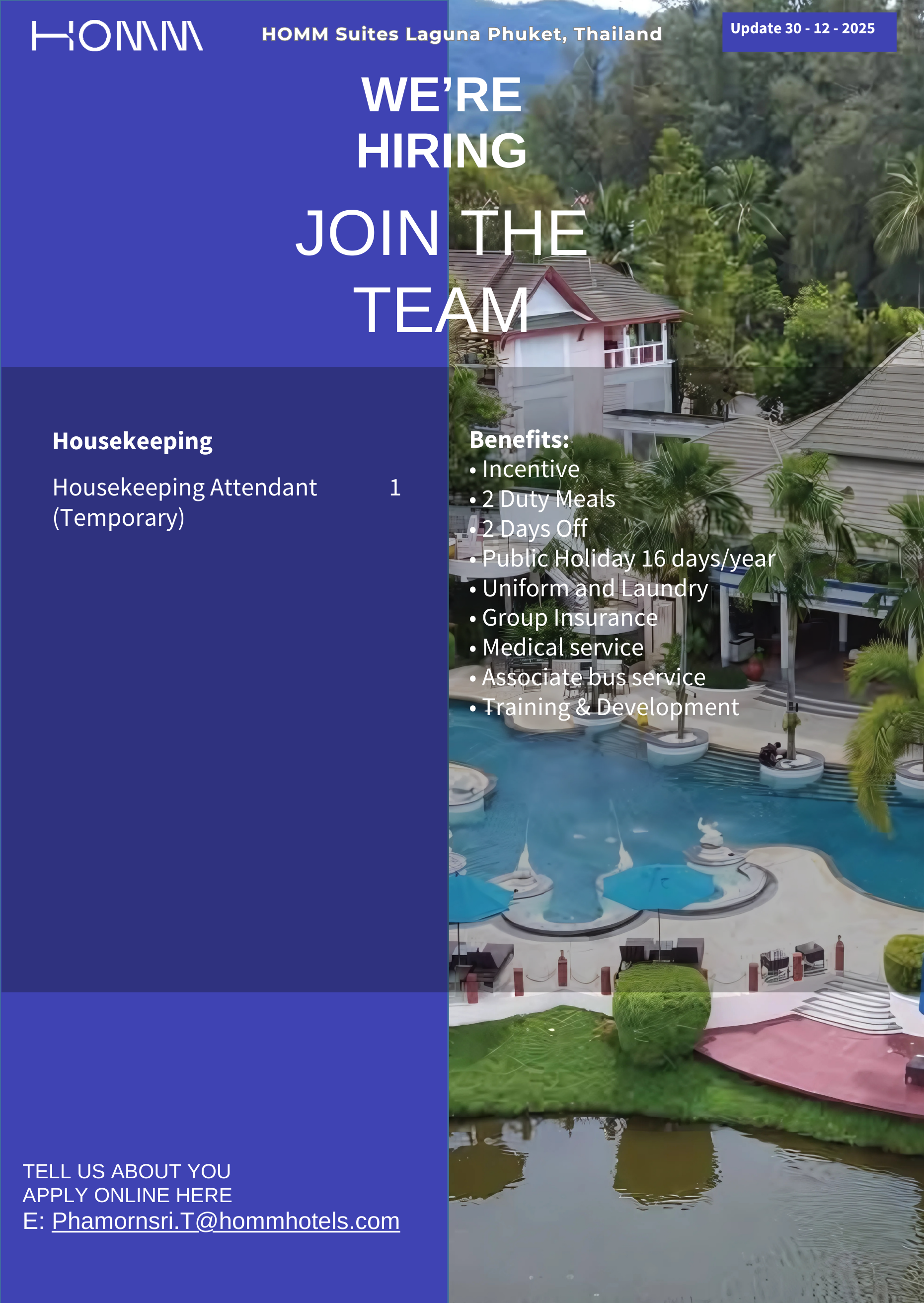 ข่าวสารรับสมัครงาน! โรงแรมโฮม สวีท ลากูน่า อัพเดต ณ วันที่ 30 ธ.ค. 2568