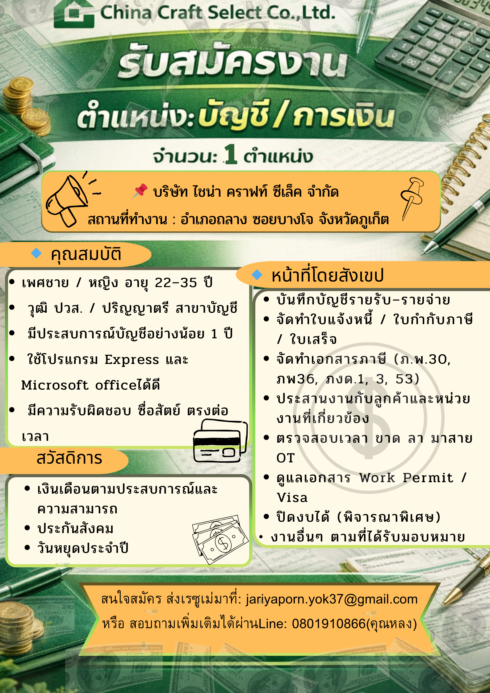 เปิดรับสมัครงานหลายอัตรา !! สนใจสมัครงานโทร 088-7660331 หรือ [email protected]