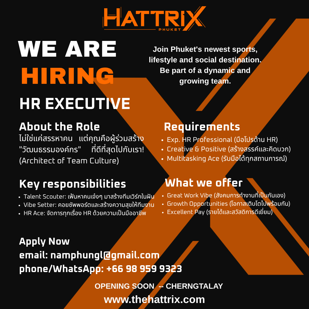 #HattriX #Phuket #NowHiring #HRExecutive #SportsAndLifestyle