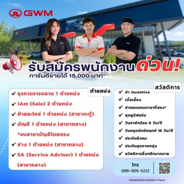 -หากสนใจสามารถเข้ามาเขียนใบสมัครได้ที่ โชว์รูม GWM Anuphas Phuket สำนักงานใหญ่ (อนุเสาวรีย์ ทางไปเชิงทะเล เยื้องกับโรบินสันถลาง)